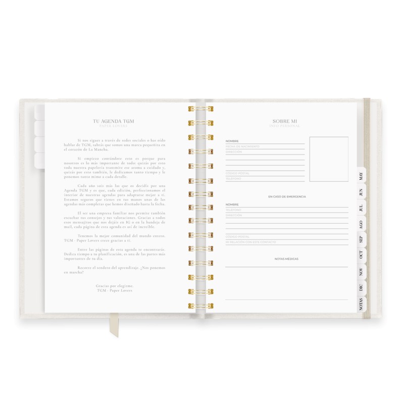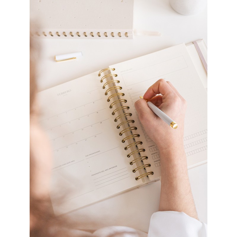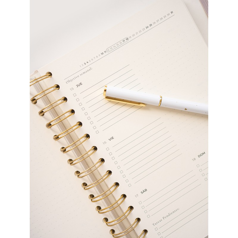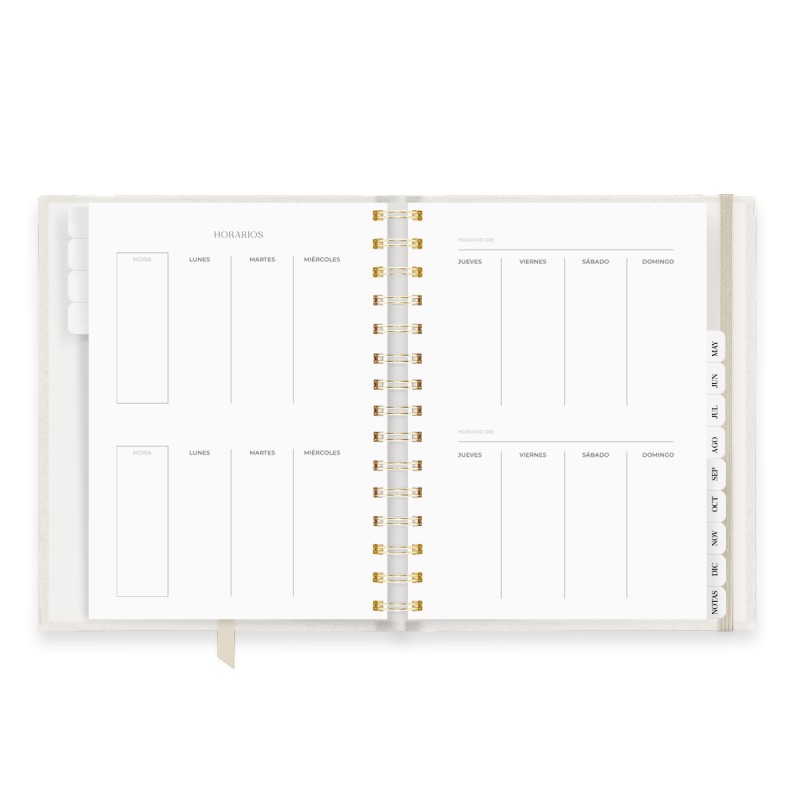 Además, encontrarás páginas para la planificación del año vista, organizador de horarios, control de gastos…