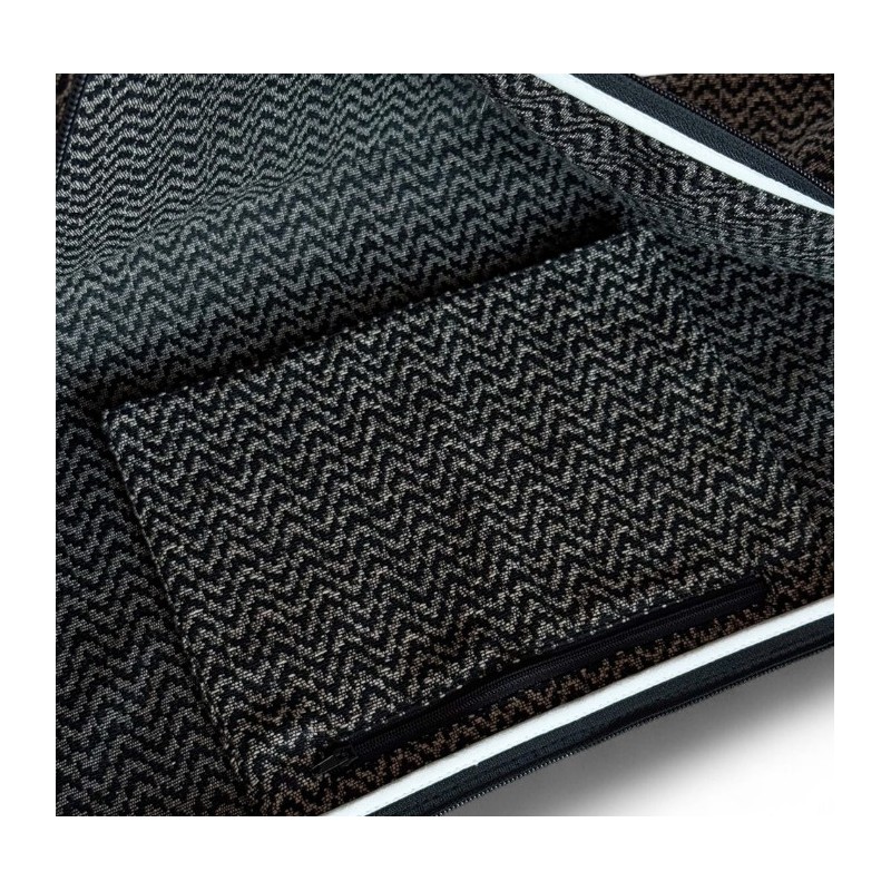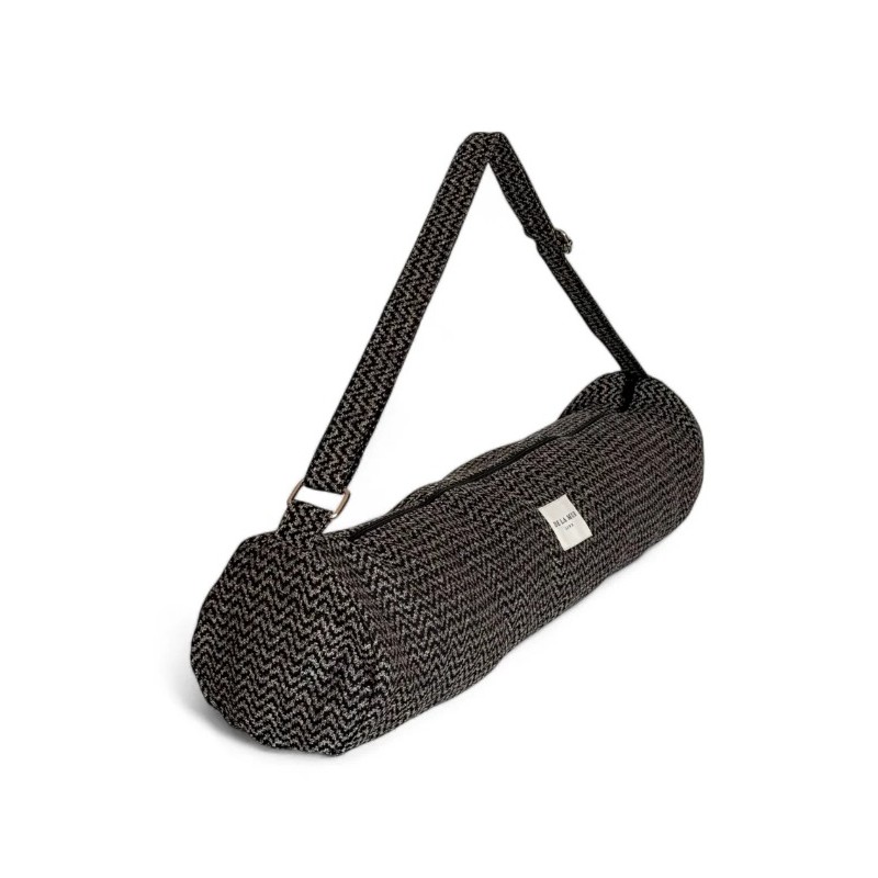 Bolsa para guardar esterilla con asa regulable para llevar al hombro o cruzada. Con cremallera en la parte superior. Con tejido grueso de jacquard con estampado de espiga de color beige y negro. Con bolsillo con cremallera interior. Para su correcto mantenimiento se aconseja lavarlo en frío a mano y no utilizar la secadora.