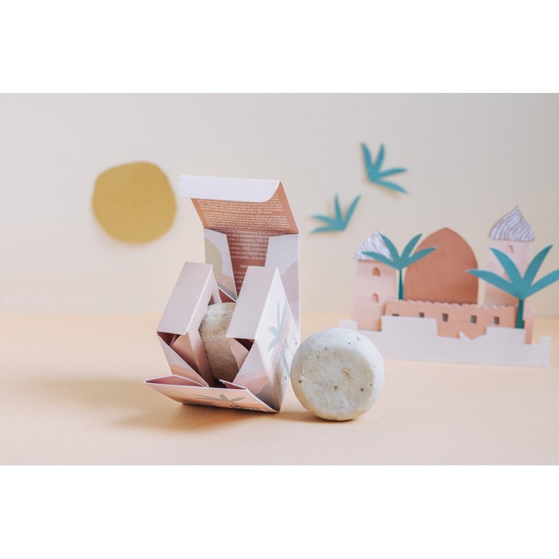 Este champú sólido es un producto 100% natural biodegradable, al no contener agua, la concentración de principios activos es más alta y además su formula es sin parabenos y EDTA, sin colorantes, sin conservantes, sin perfumes sintéticos, sin aceite de palma, sin siliconas, tensioactivos aniónicos (lauril y laureth sulfatos de sodio) y sin agentes espumantes (PEG, Polietilenos, Polietilenglicoles).