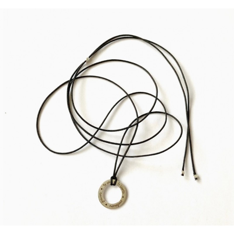 Pieza de plata grabada con las palabras "Lo siento, perdóname, te amo, gracias". Puede ser gargantilla o collar más largo.