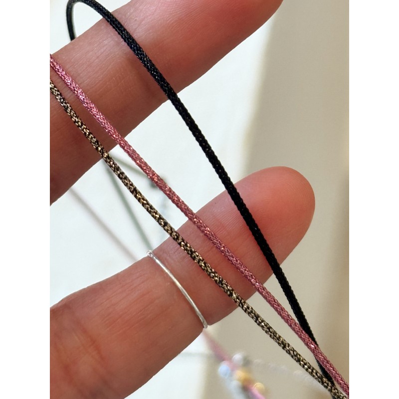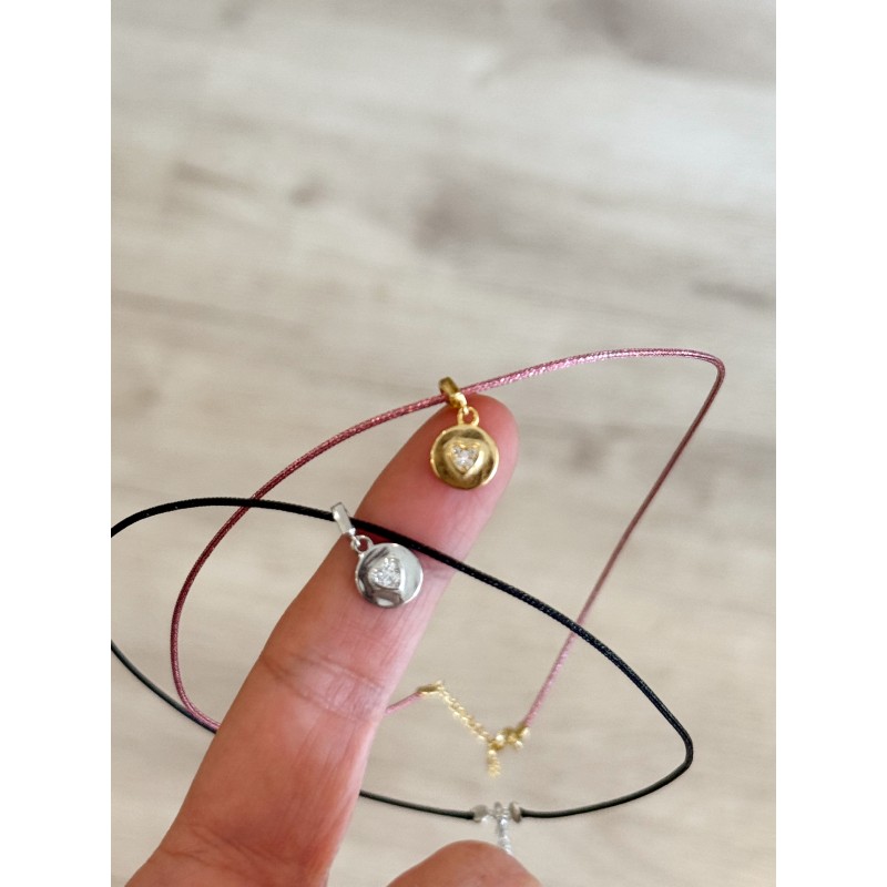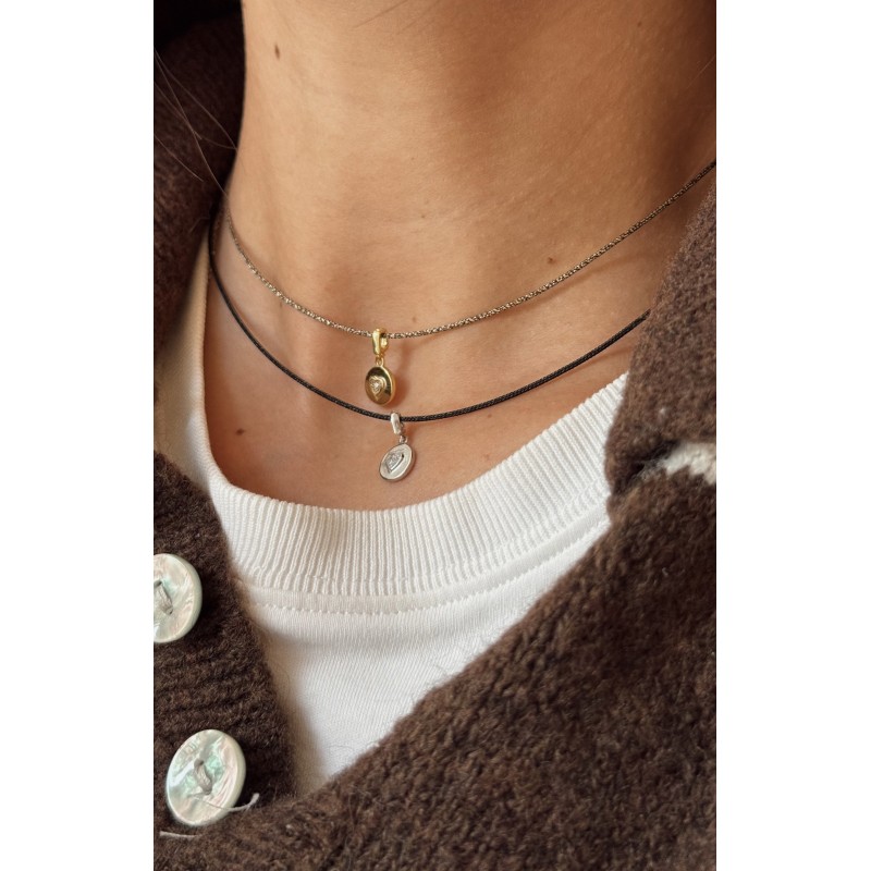Gargantilla de cordón metalizado con charm y alargue de plata.