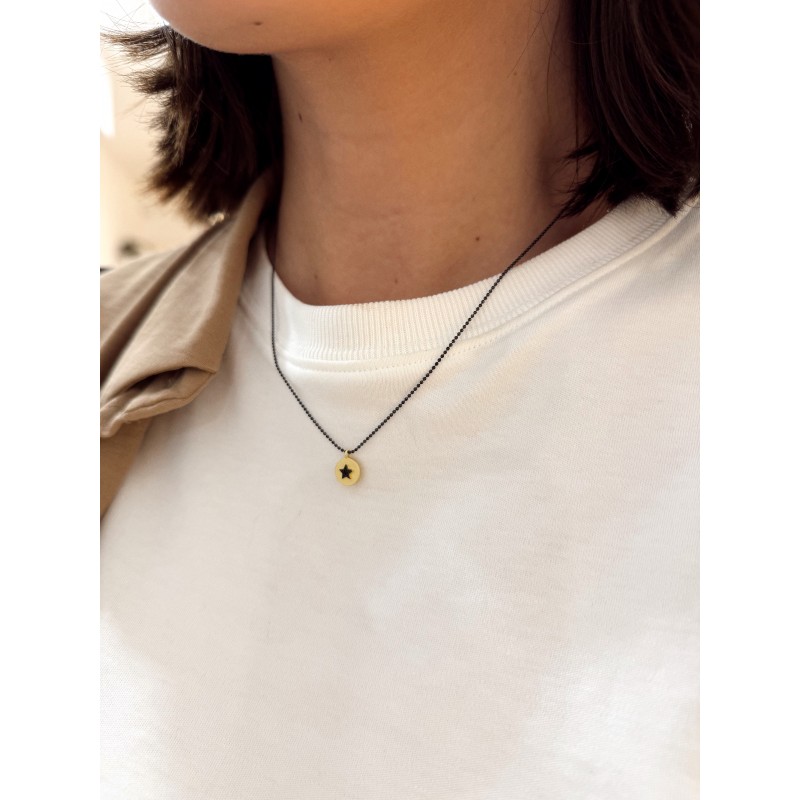 Colgante de plata con charm redondo con estrella de circonitas negras.