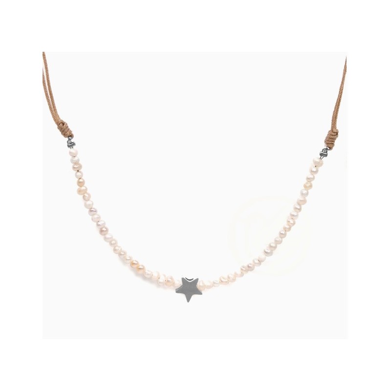 Colgante gargantilla acero perlas Bohem Star