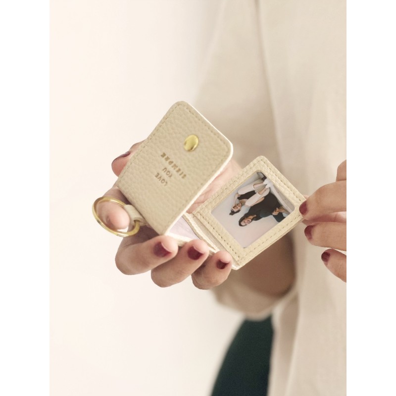 Con cierre de corchete, se puede abrir para almacenar dos fotografías tamaño 4,5cm x 4,5cm.