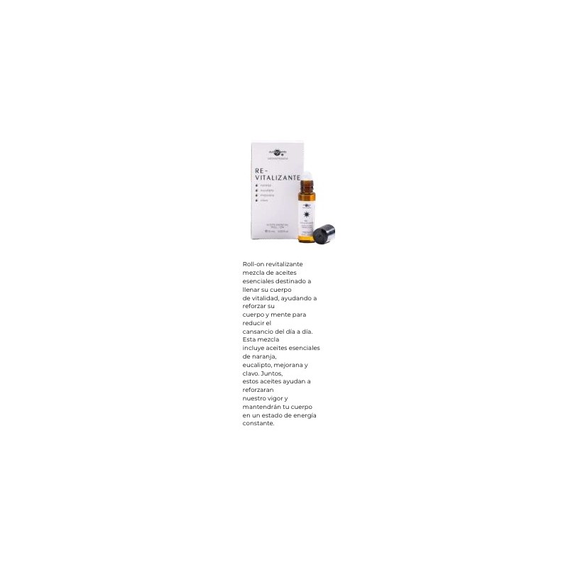 REVITALIZANTE (NARANJA, EUCALIPTO, MEJORANA, CLAVO): Mezcla de aceites esenciales destinado a llenar su cuerpo de vitalidad, ayudando a reforzar su cuerpo y mente para reducir el cansancio del día a día. Esta mezcla incluye aceites esenciales de naranja, eucalipto, mejorana y clavo. Juntos, estos aceites ayudan a reforzaran nuestro vigor y mantendrán tu cuerpo en un estado de energía constante.