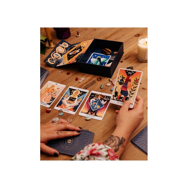 A través de sus personajes, sus arquetipos y las situaciones que se plantean en el tarot podemos resolver muchas preguntas y nos ayudará a tomar decisiones con más claridad. Además, los acabados que hemos diseñado, su calidad, la belleza de todo el proyecto en sí lo convierte en un objeto de culto que seguro ocupará un lugar privilegiado en tu escritorio, mesita y espacios especiales dedicados a ti misma.