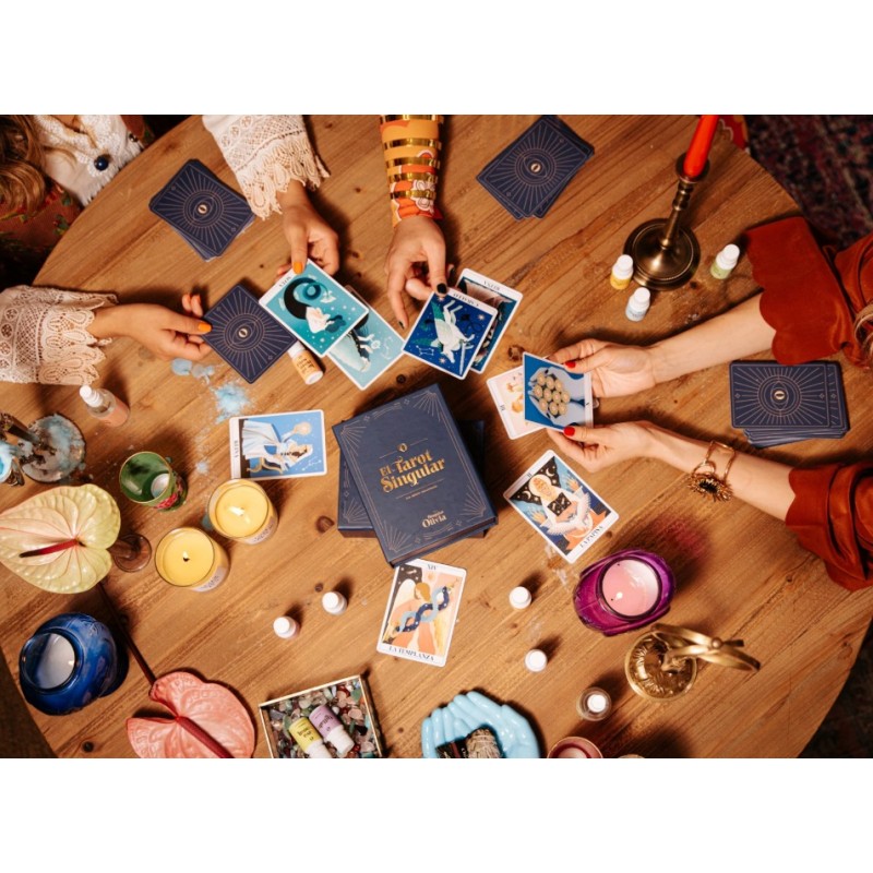 Diseñamos la caja para que además de la baraja pueda contener tus aceites esenciales, minerales, velas, libreta, boli... y todo lo que quieras meter ahi para tener cerca en tus momentos de consulta.