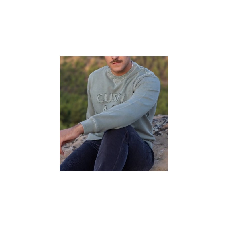 Sudadera en color verde con efecto lavado garment dyed, confeccionada en algodón de alta calidad que ofrece suavidad, resistencia y un estilo único.
