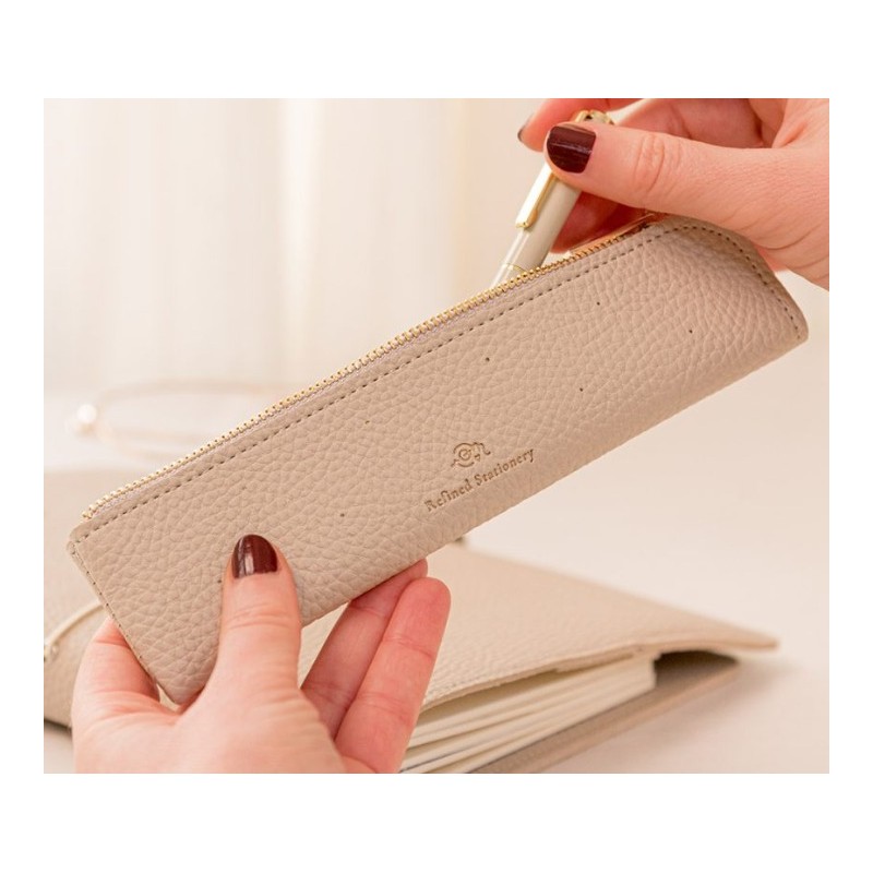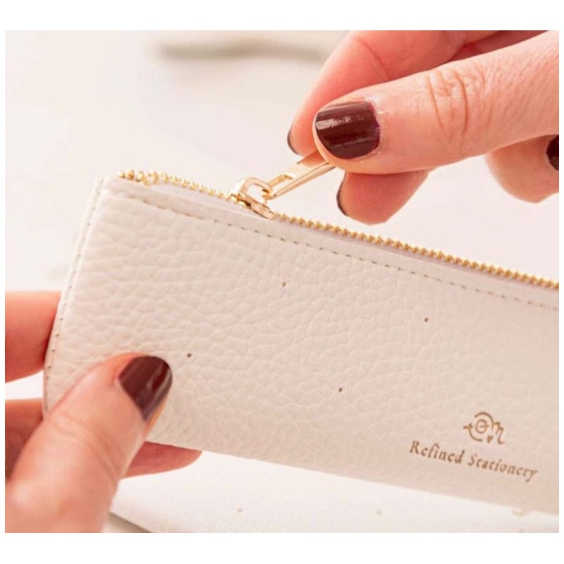 Incluye cremallera en color dorado, a juego con stamping de estuche.