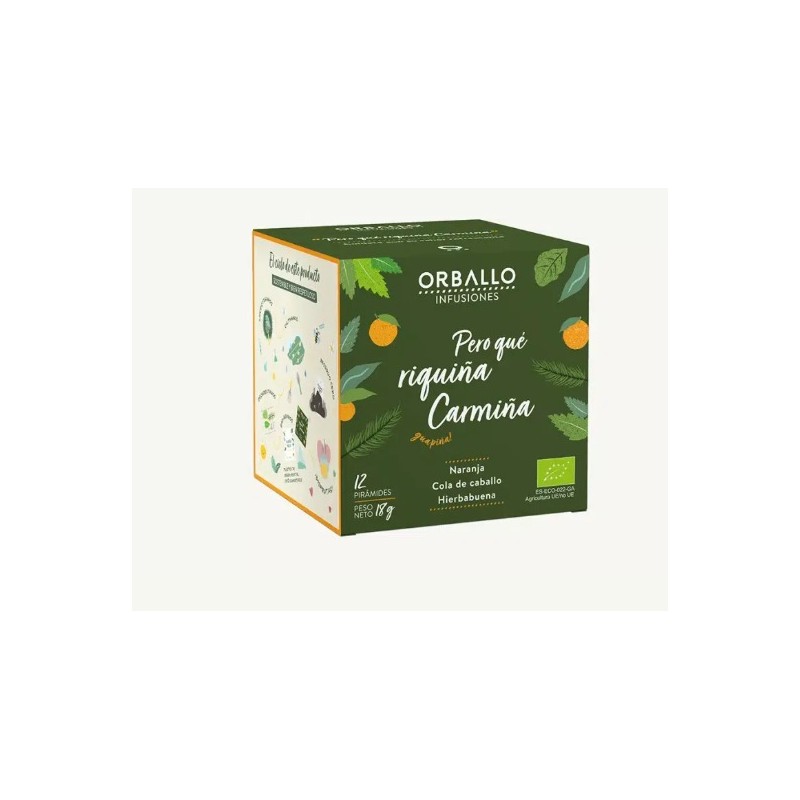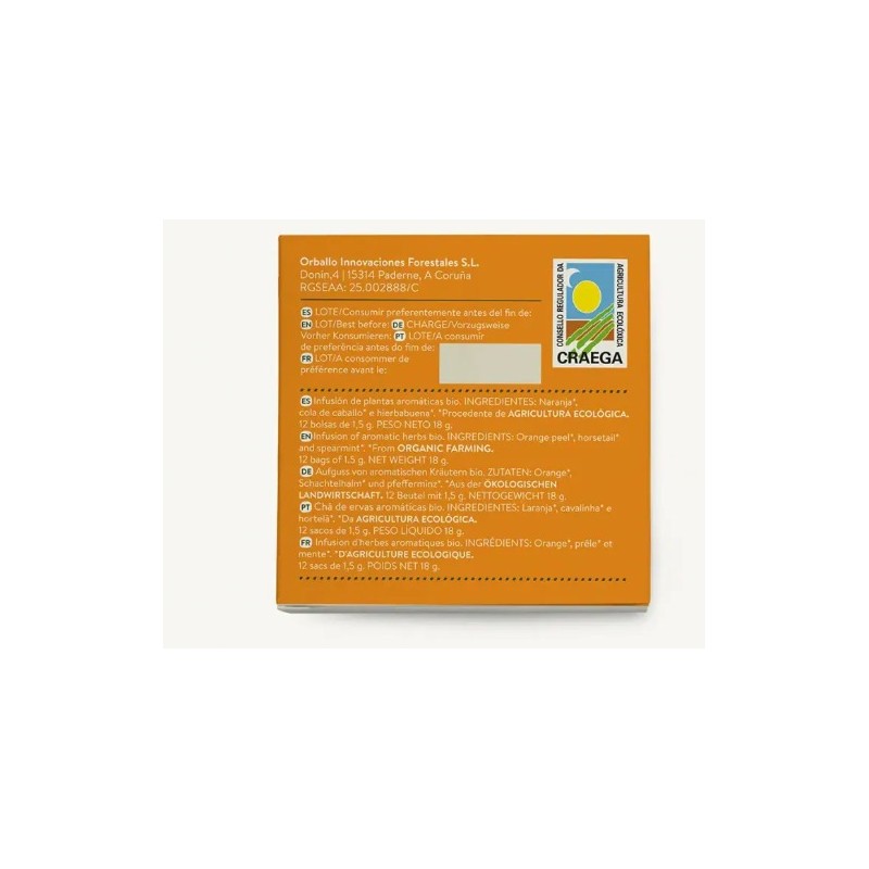Ingredientes: cola de caballo, naranja y hierbabuena 100% ecológicos. Vegana. Sin cafeína ni teína.
