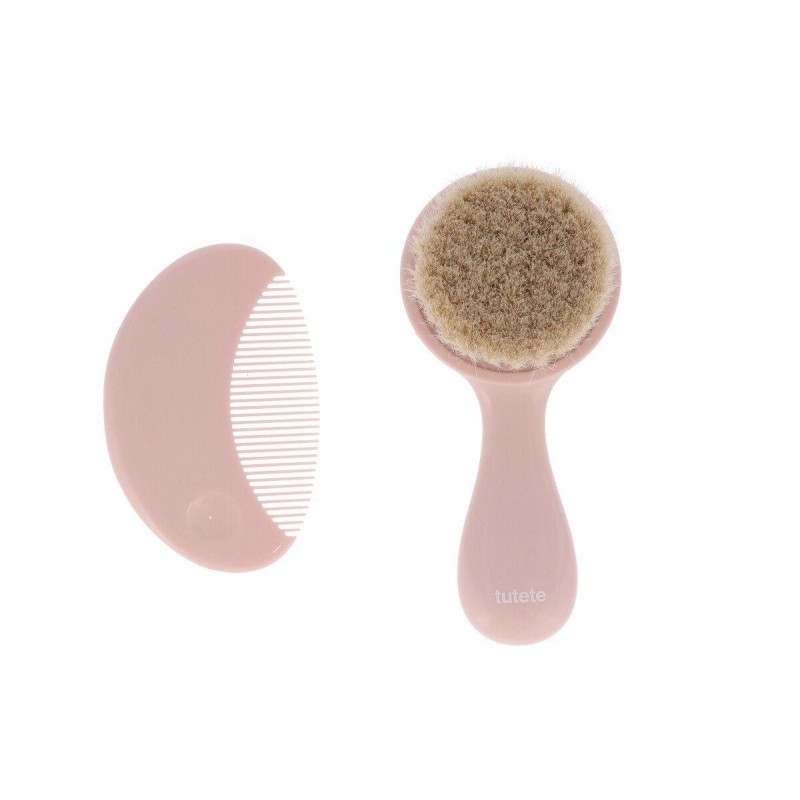 Set de peine y cepillo de cerdas naturales, adecuado para el cuidado diario del bebé.
