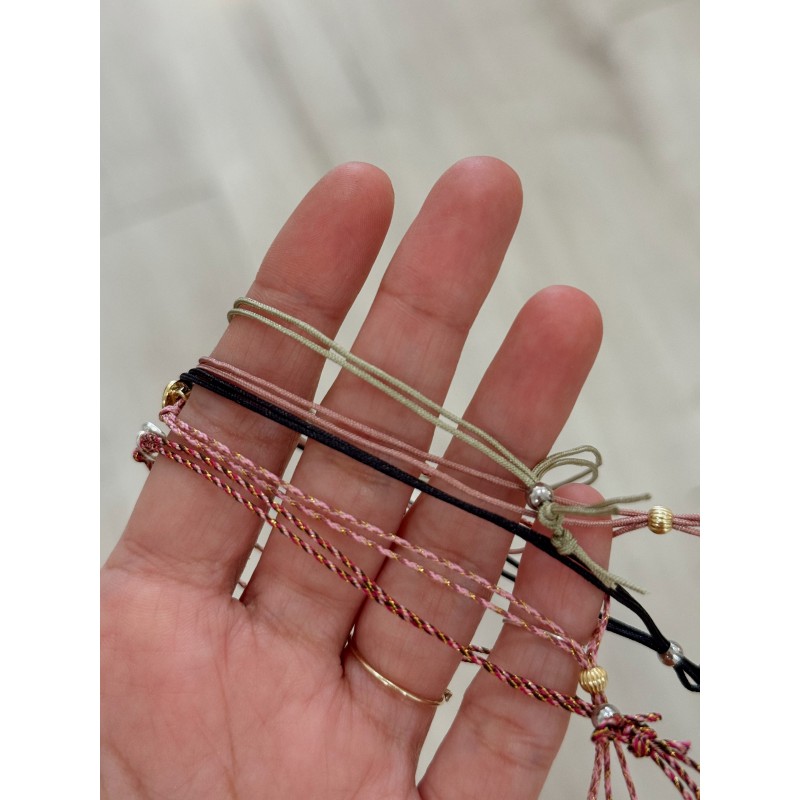 Pulsera de cordón ajustable con charm de plata o plata con baño dorado.