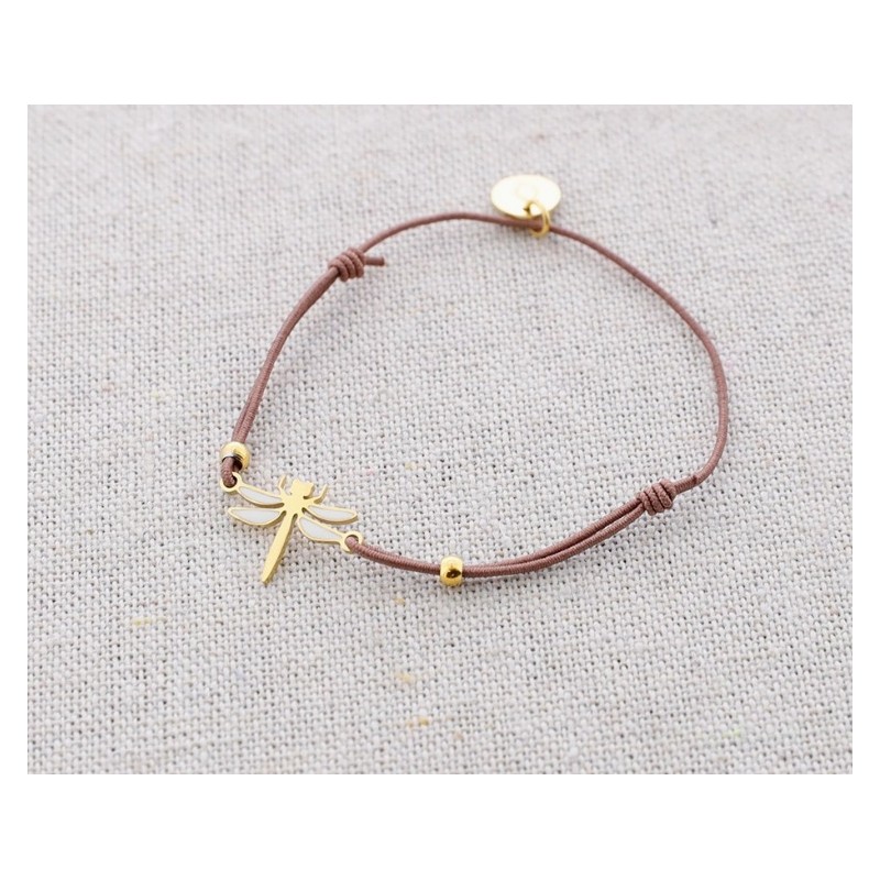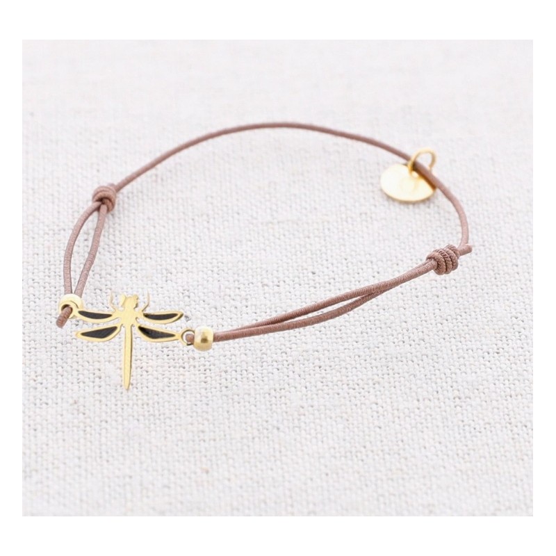 Pulsera de cordón elástico y ajustable con charm de libélula esmaltada.