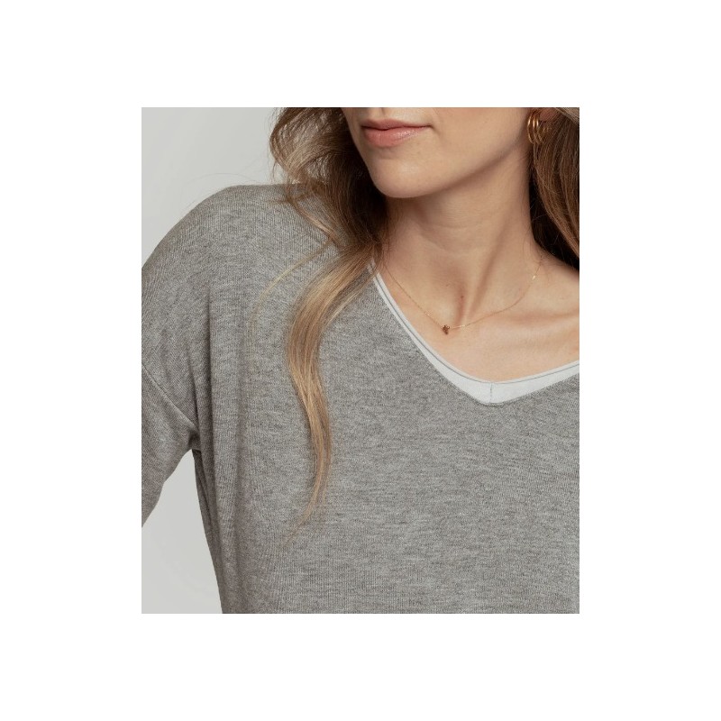 Tejido de punto. Diseño recto. Cuello pico. Manga larga. Hombros caídos.