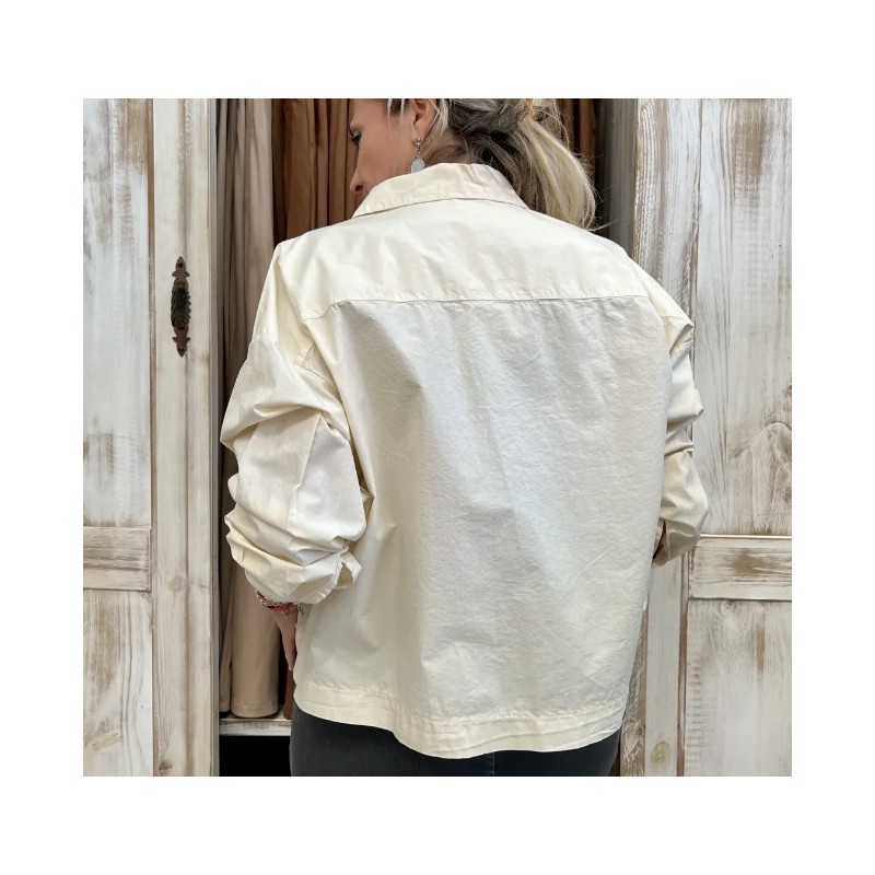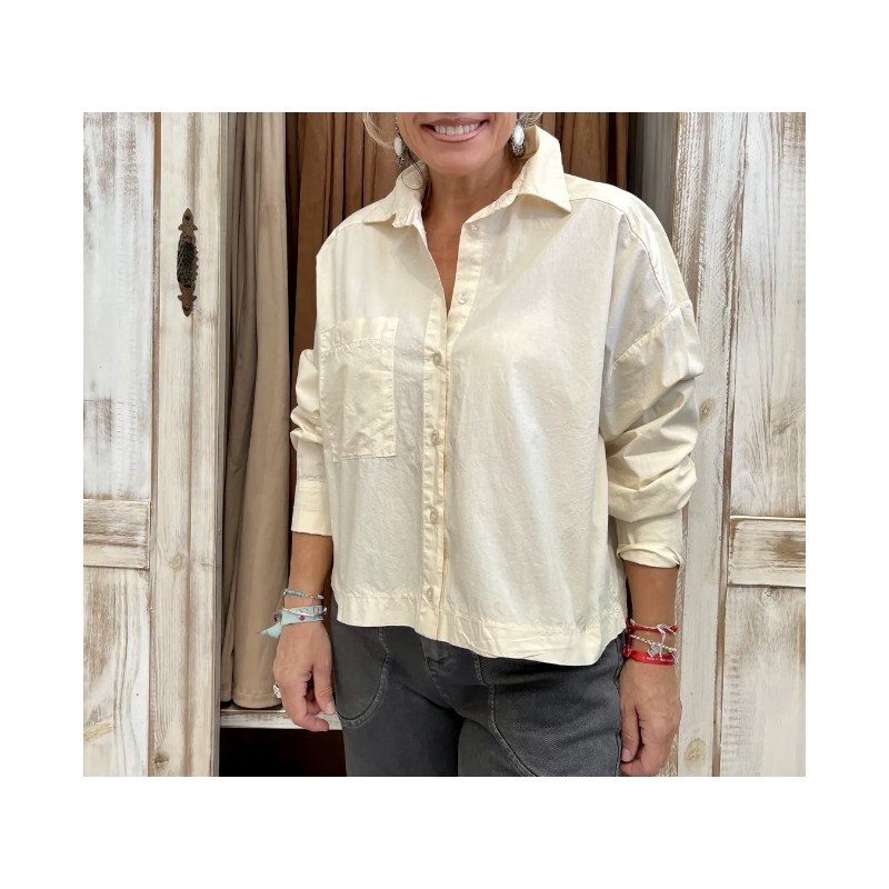 Blusa corte recto, abotonada central y en puño. Bolsillo ancho en pecho.