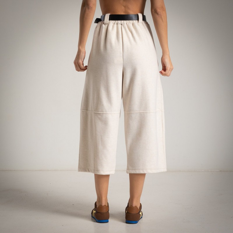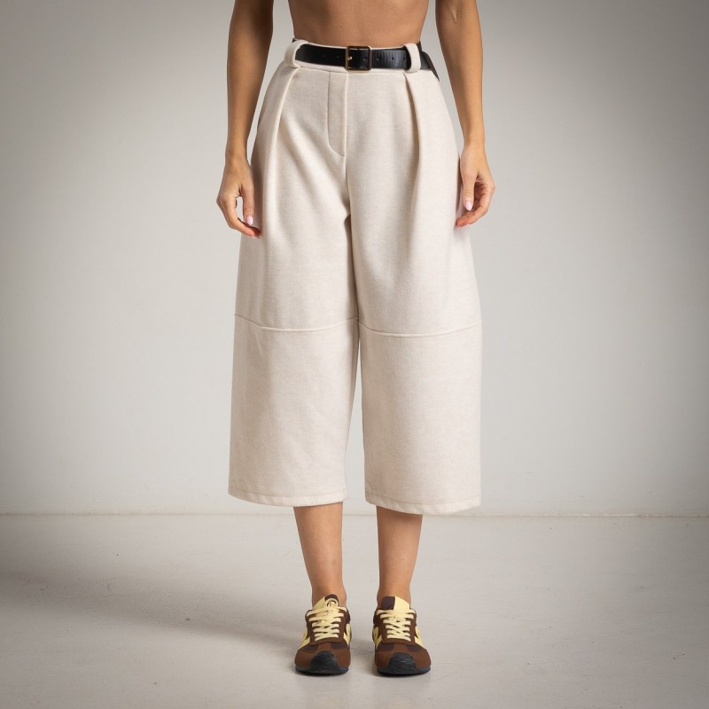Pantalón culotte, con pinzas y trebillas, bolsillos.